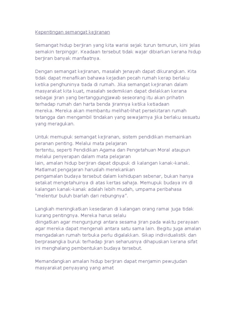 Contoh Karangan Spm Kebaikan Semangat Kejiranan Written By Victor_Austin Tuesday, May 24, 2022 Add Comment Edit Karangan Semangat Kejiranan Pdf Kepentingan Semangat Kejiranan Kepada Masyarakat Pdf Contoh Karangan Semangat Kejiranan Pdf Karangan Semangat Kejiranan Pt3 Peranan Hidup Berjiran Kepentingan Semangat Kejiranan Pdf Share this post